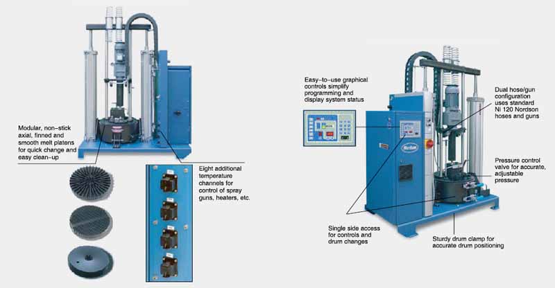 本機膠盤機構為平行四邊形,只須逆時針方向扳動膠盤裝卸把手,即可取出膠盤,反之,則可裝膠盤。